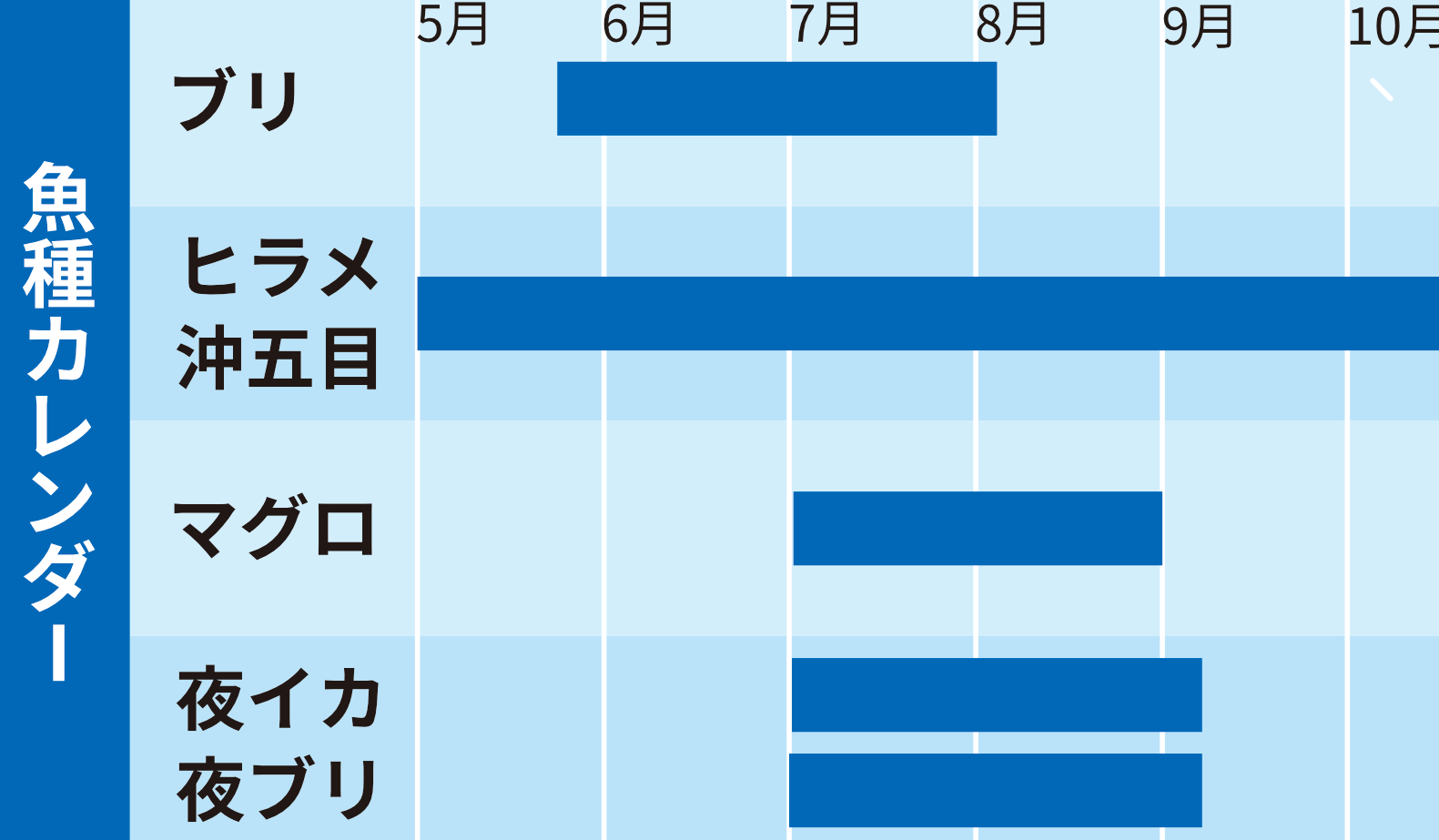 上記釣り物カレンダーの時期とズレが生じる場合があります。あくまでも目安としてご覧ください。